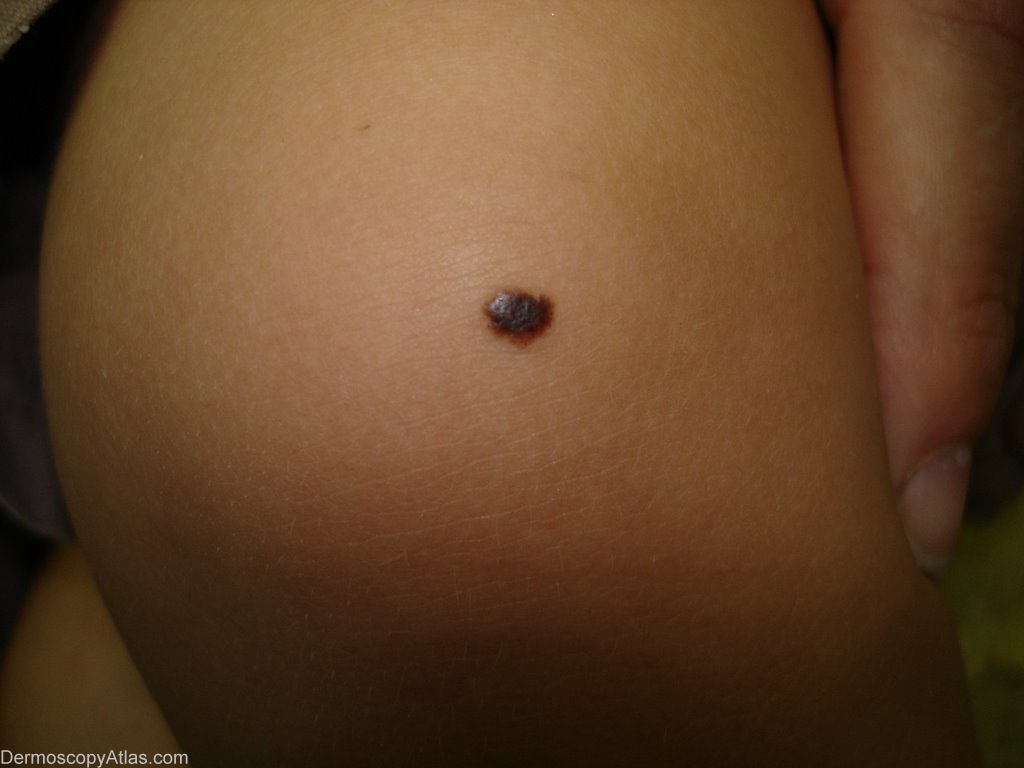 History: This lesion which has grown rapidly in the last 4 months on the knee of a 14 months old boy. Nothing there before. No other nevi whatsoever. No family history of abnormal nevi or melanoma.