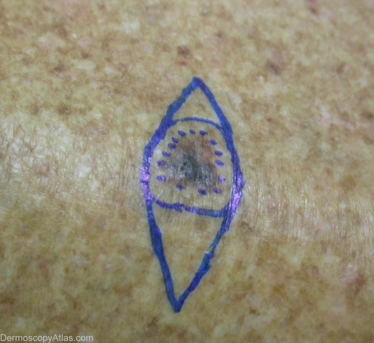 Fitzpatrick type 3 skin, sun worshipper. Lesion noted to be enlarging over three months.