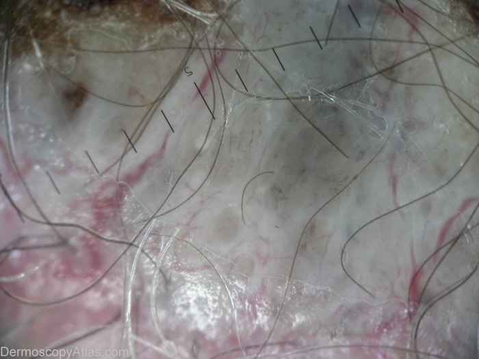 Description: Clinical scaly indurated lump in the scalp