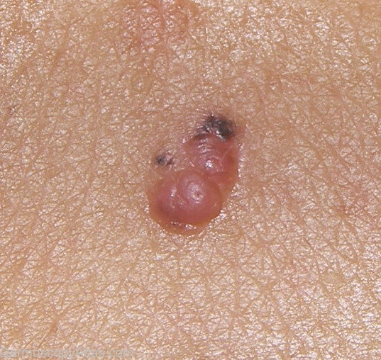 The patient has a history of an excised pigmented lesion done with laser a year ago. Some time after this she has developed a new lesion precisely at the excision site. No previous histopathology report (laser excision). I have seen very often recurrent nevus after laser excision. Laser excision is not recommended for melanocytic lesions.