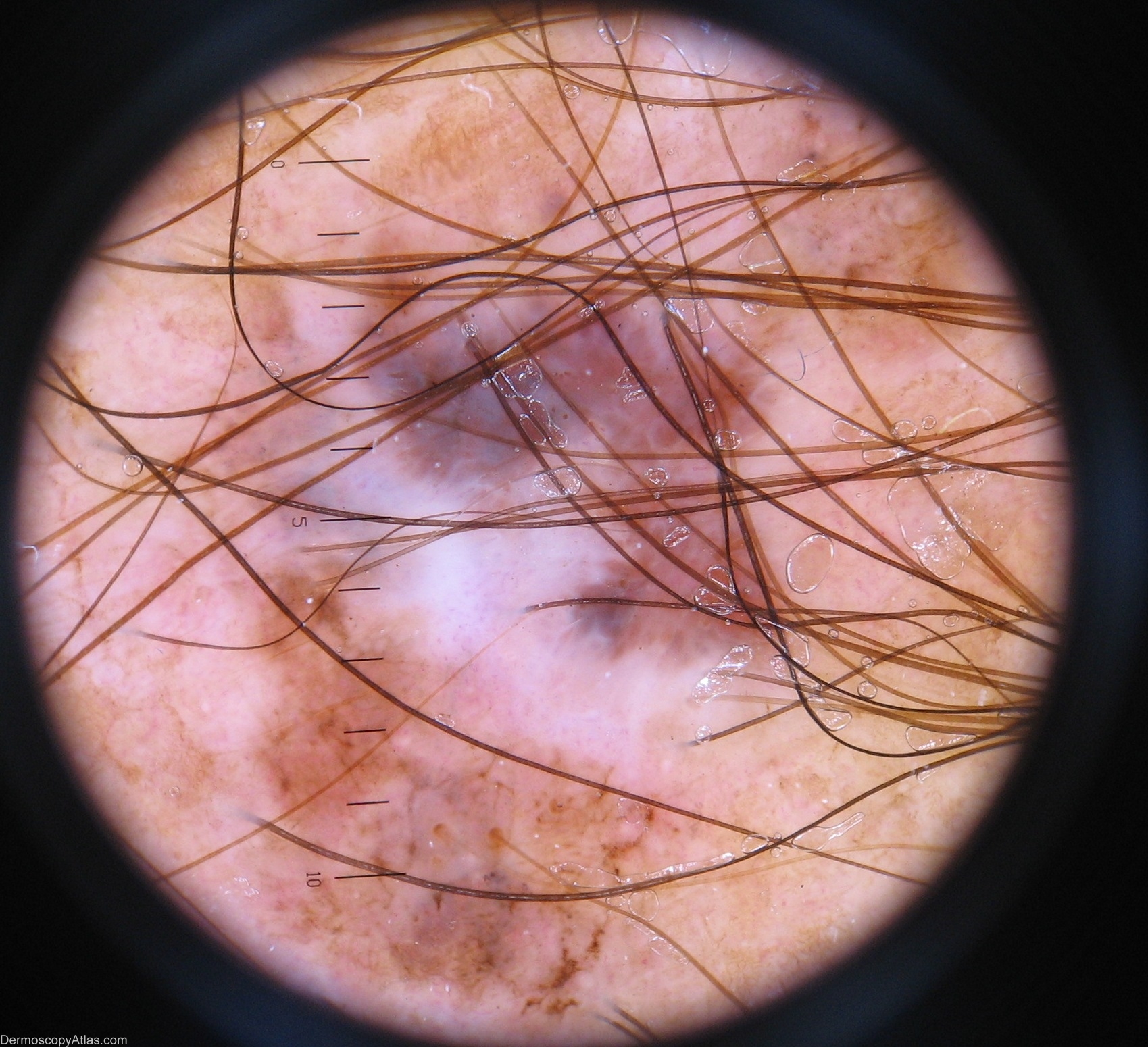 History: This 62 yr old builder has deeply tanned type 3 skin, and no history of skin cancer. He was not aware of this lesion on the posterior left calf. Excision showed SKIN POSTERIOR MEDIAL LEFT CALF - LEVEL 2, 0.70 MM THICK SUPERFICIAL SPREADING MALIGNANT MELANOMA.