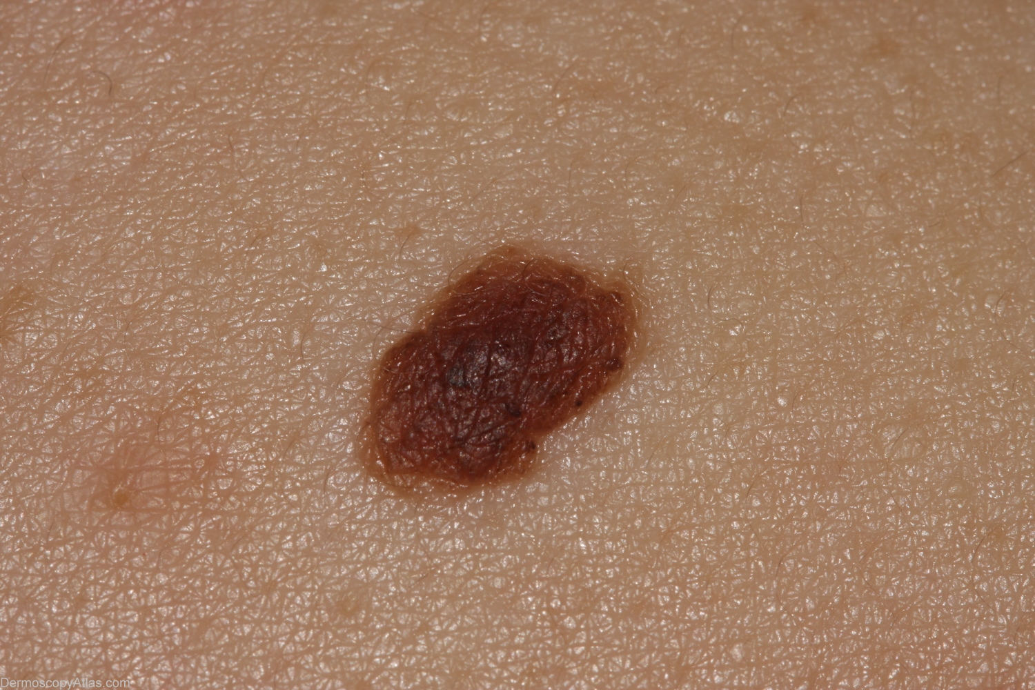 Description: This naevus shows symmetry, cobblestone patern, multiple milia cysts, and several hairs. Histology was not obtained.