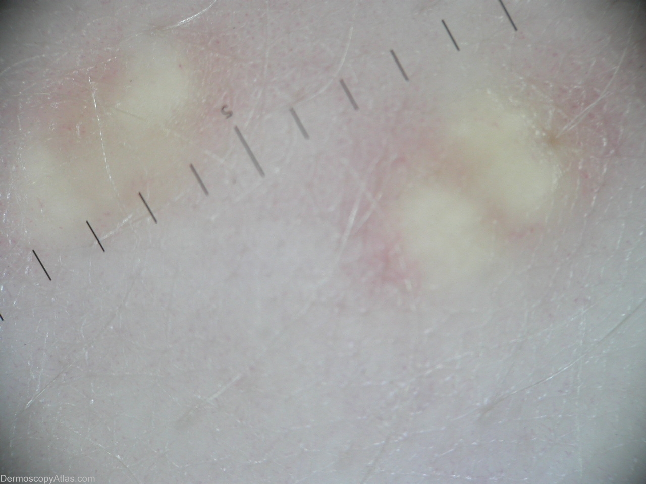 History: A 31 year old man developed eruptive xanthomas over all his body since 3 years ago. Dermoscopic description:Orange-yellow ('setting sun') homogenous structure.