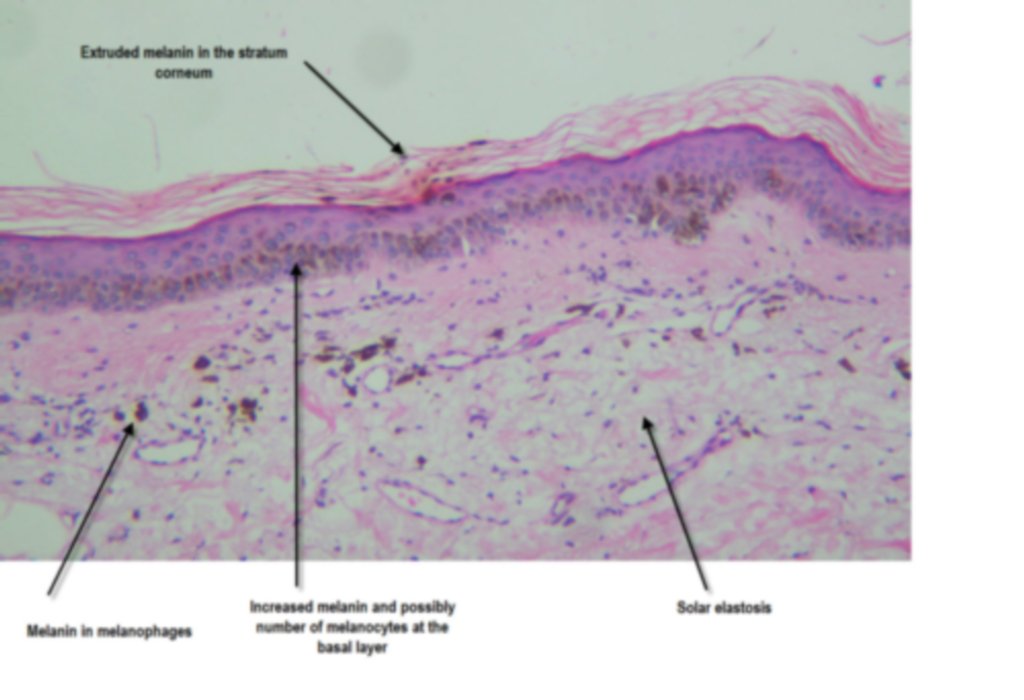 This 93 years old man has severe solar damage with three atypical pigmented lesions on the back. This is the presentation of the labelled lesion C. I thought clinically this would be a melanoma but the histology was best described by the pathologist as dysplastic junctional lentiginous nevus. Other pathologists would describe this as lentiginous melanoma which I would tend to agree with.