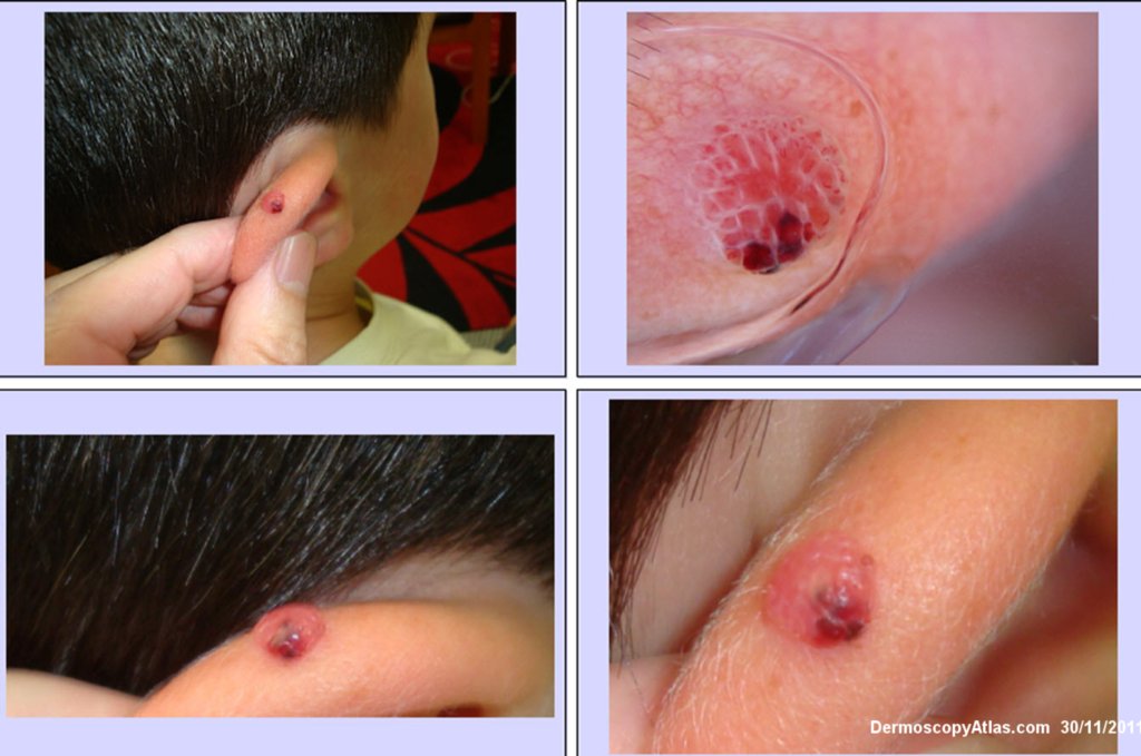 Description: Rapidly growing pink lesion on ear