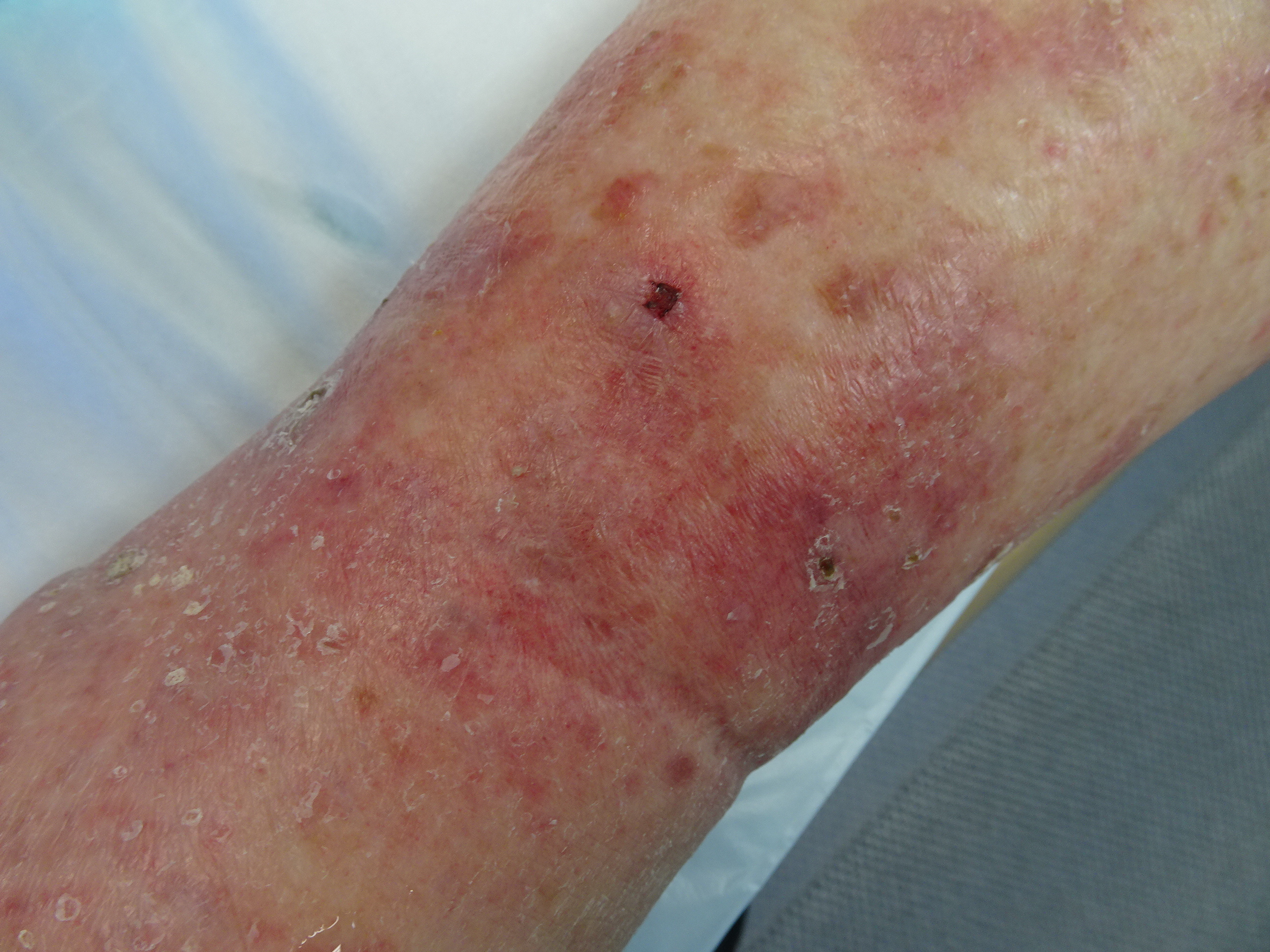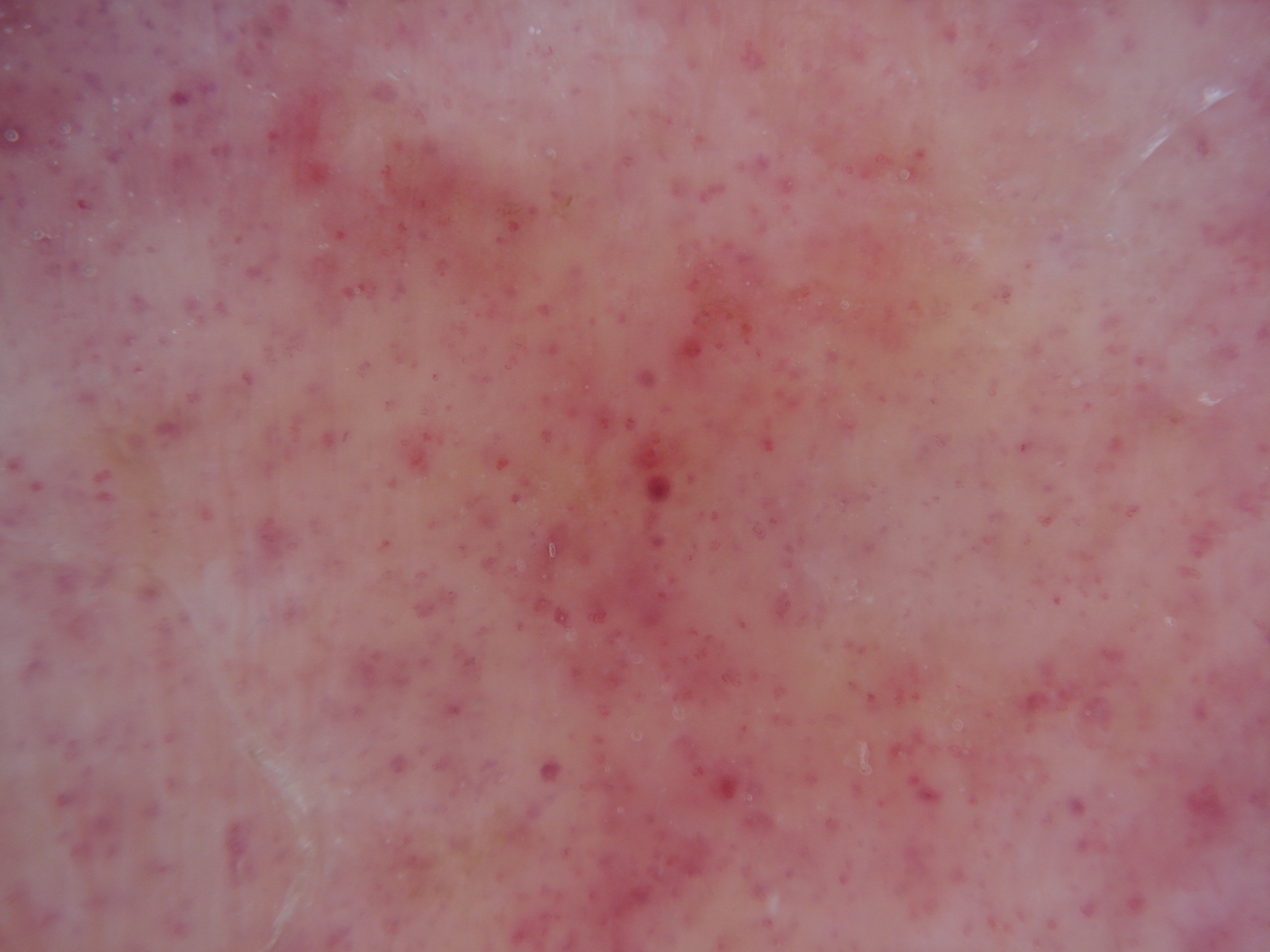 A pigmented purpuric dermatosis like this is usually due to venous stasis with dot hemorrhages from leaking capillaries. The iron in the red blood cells stains the skin an orange brown colour.