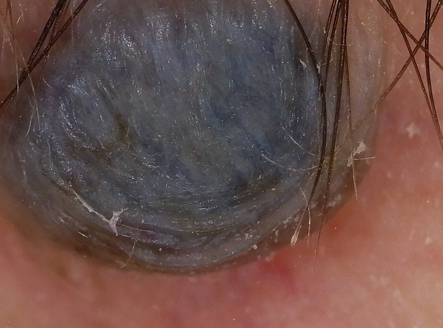 A punch excision and vertical closure showed it to be a thrombosed hemangioma