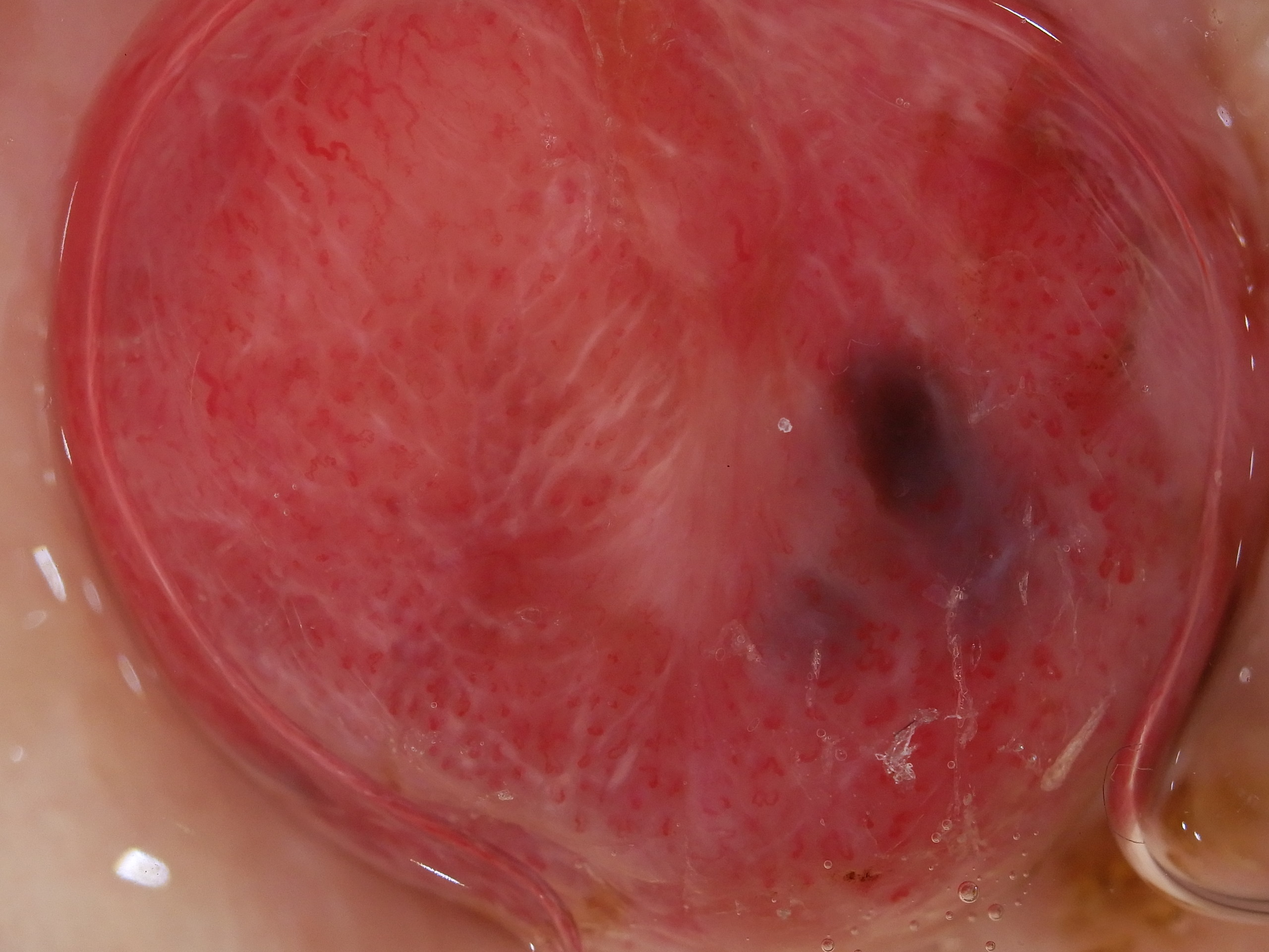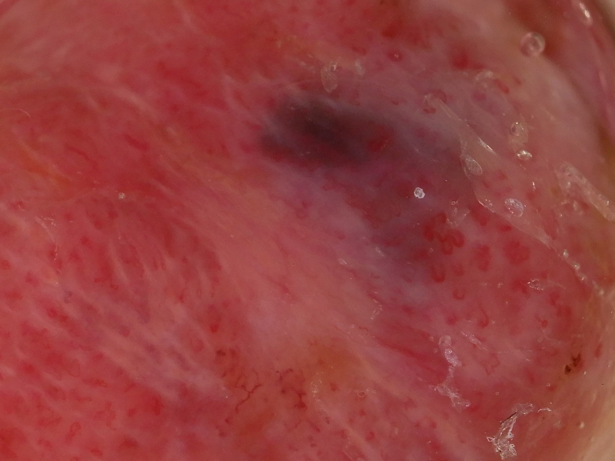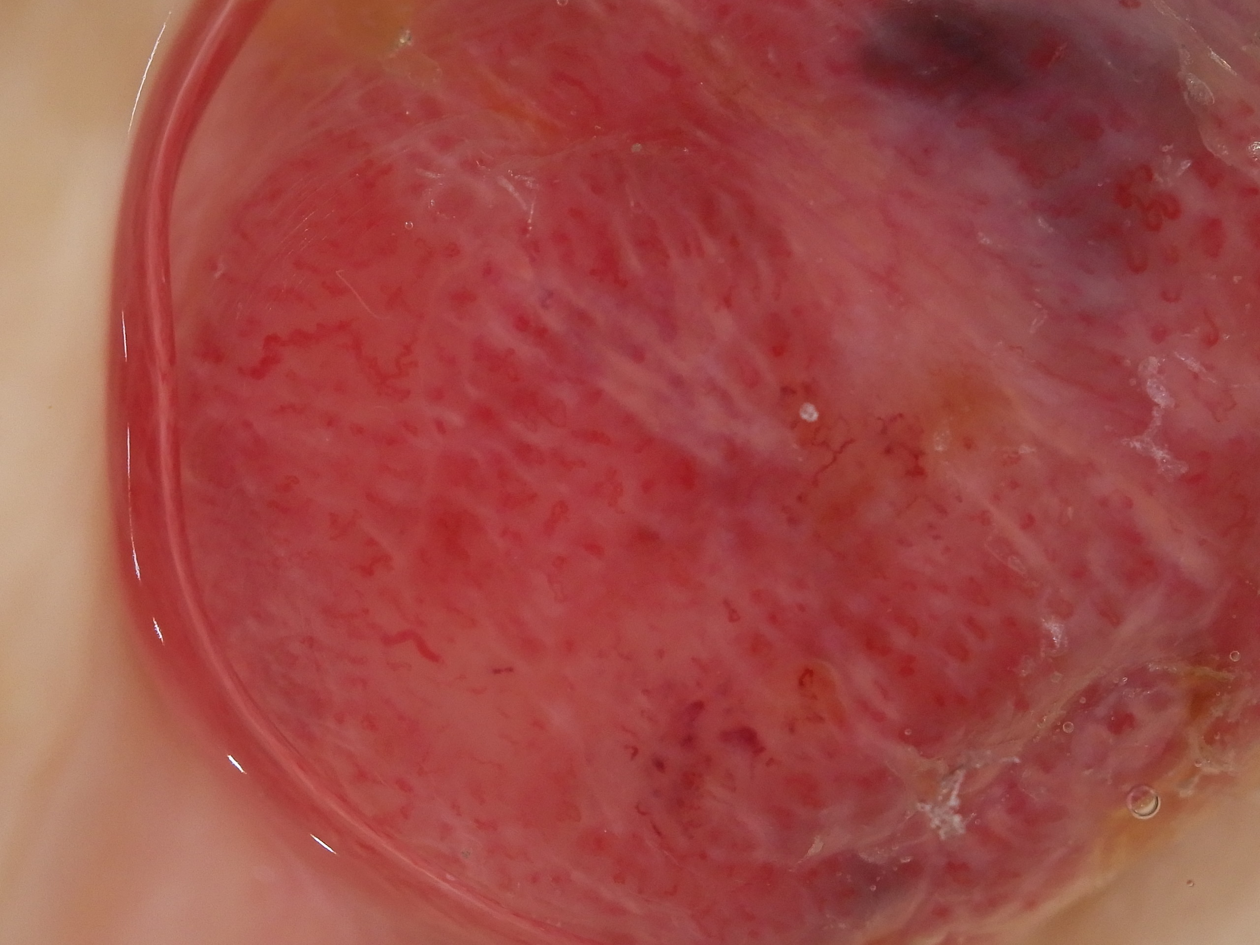 Pink nodule with white lines and pigmented clods
