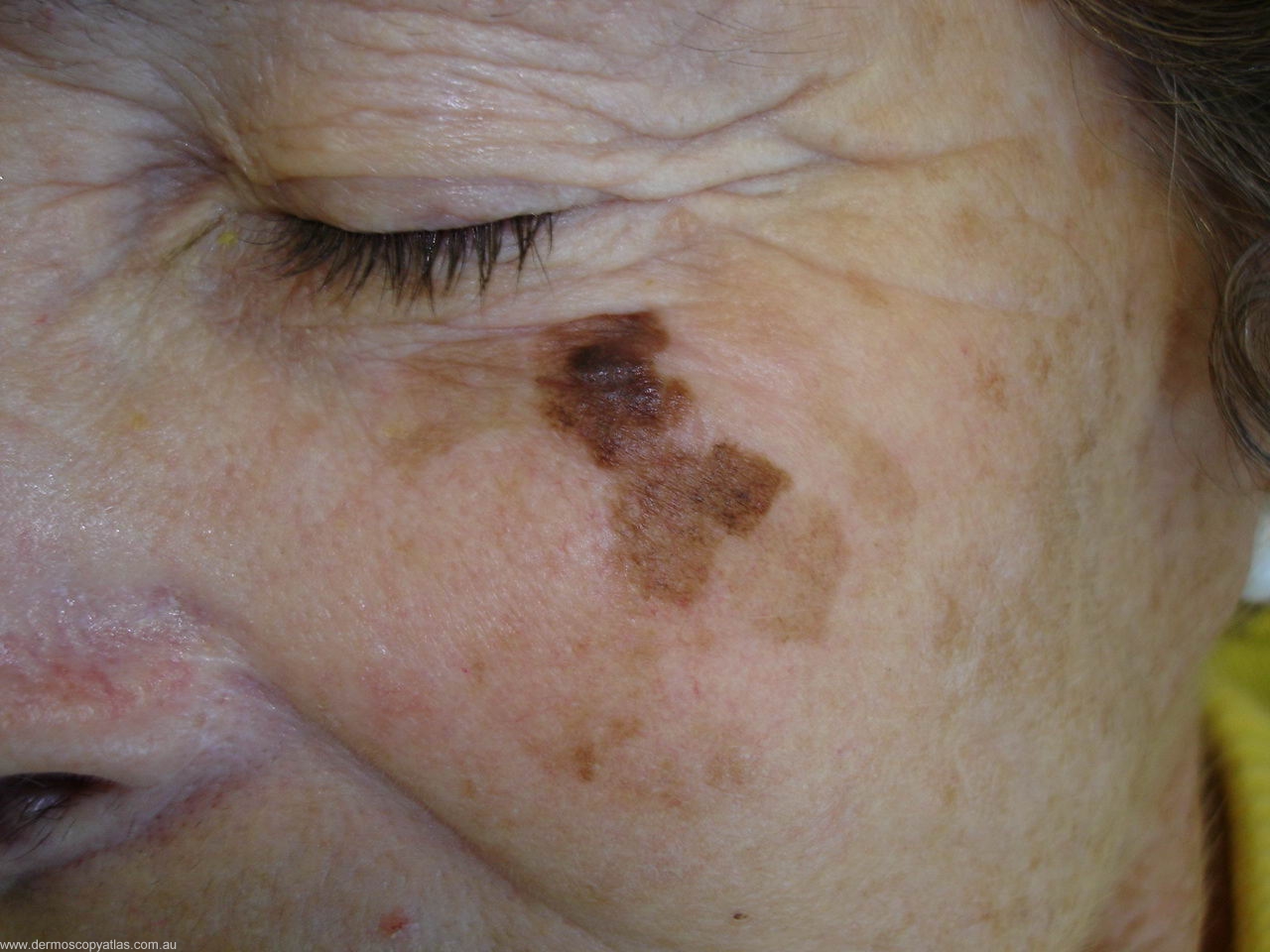 A score of three or more allows melanoma to be diagnosed with a sensitivity of 95% but a specificity of only 75%. It is difficult to apply the seven point checklist or any other algorithm for that matter to lesions on the face and on the palms and soles. In these locations there are specific diagnostic dermatoscopic features that point to a diagnosis of melanoma including incomplete perifollicular pigmentation and rhomboidal structures in lentigo maligna and the parallel ridge pattern in acral melanoma.