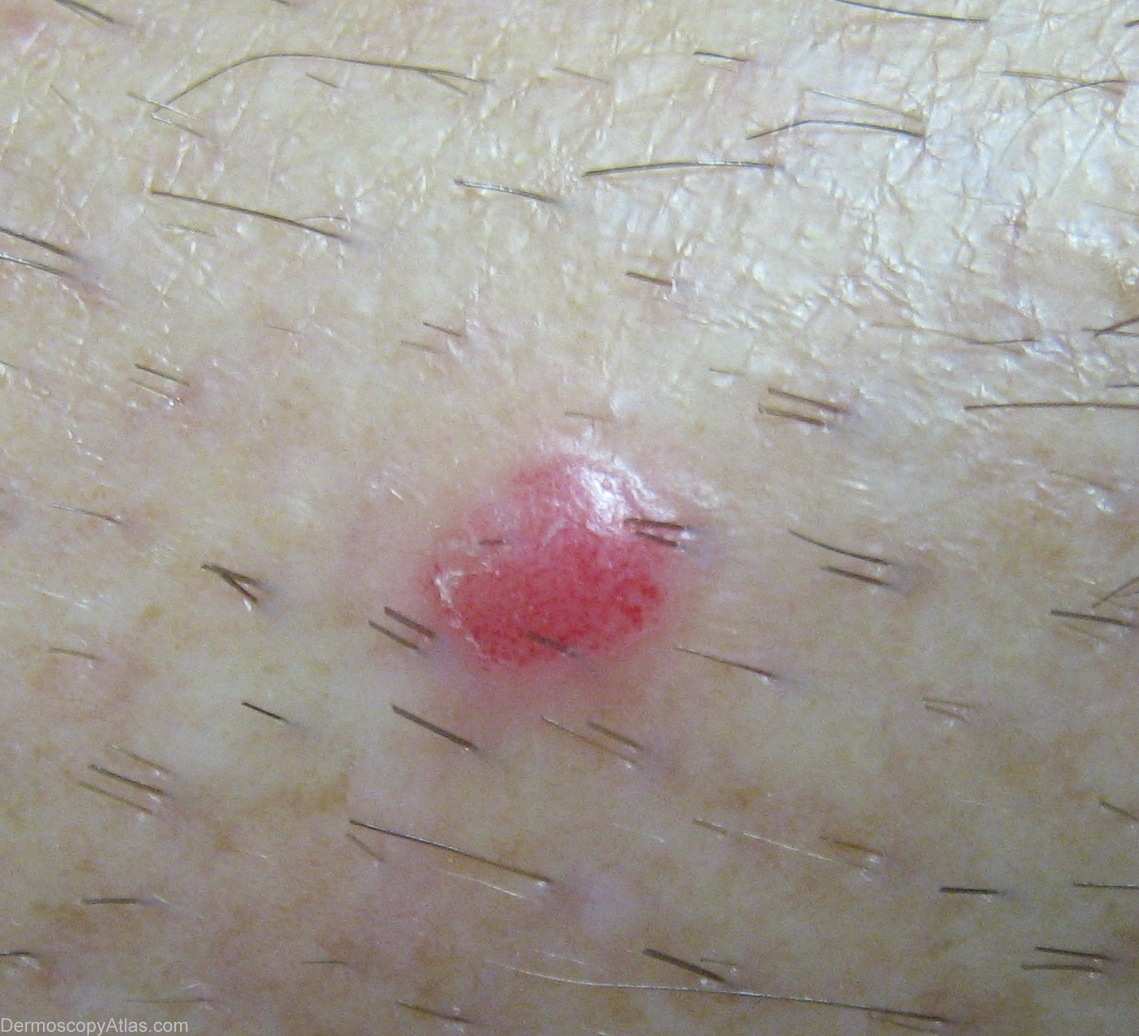 History: Lesion present for 3-4 months, sun damaged skin, has crusted and bled a couple of times and been irritated.
