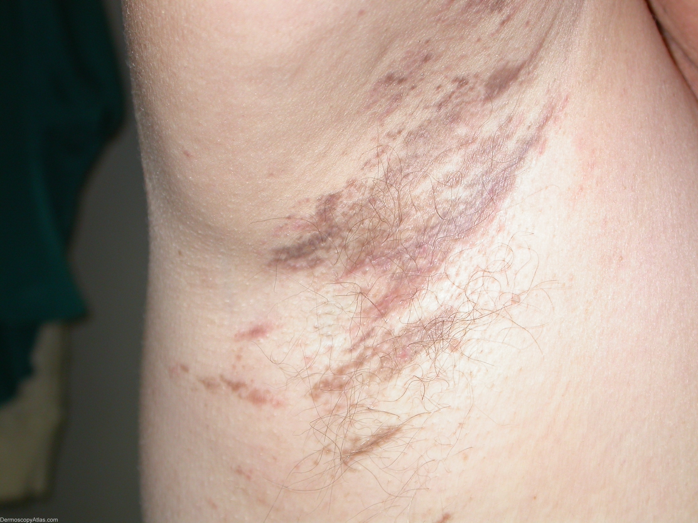 Description: Velvety plaques in the axilla