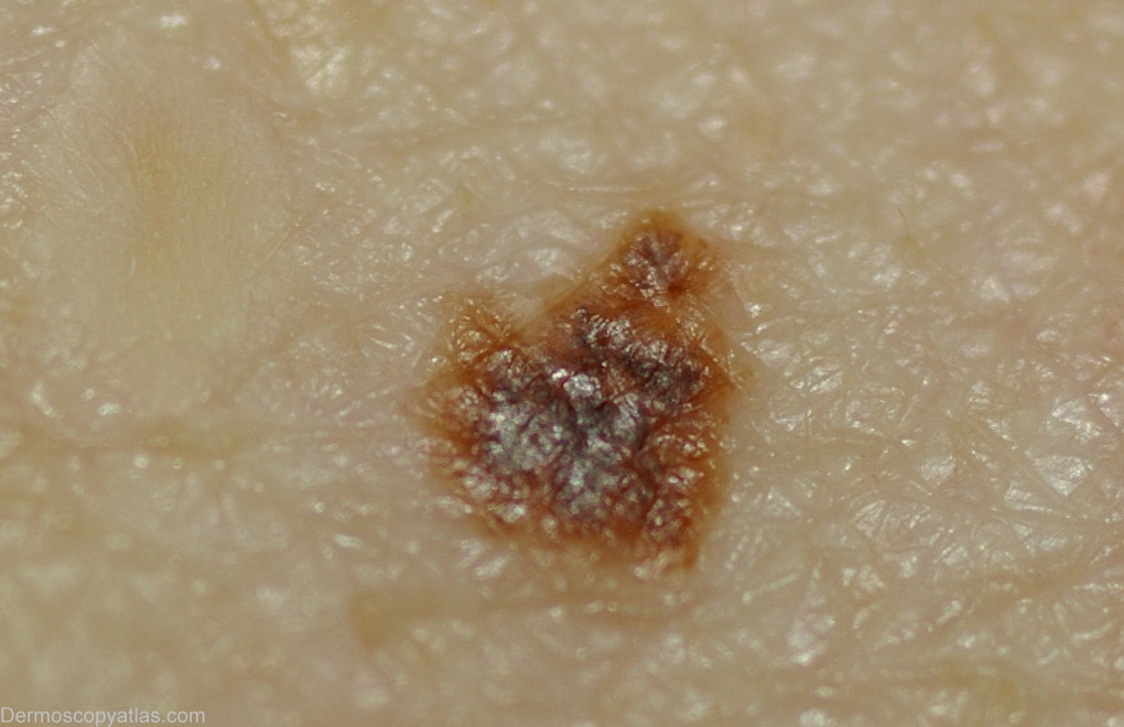 Description: Dermoscopy- Asymmetry of structures and colour.