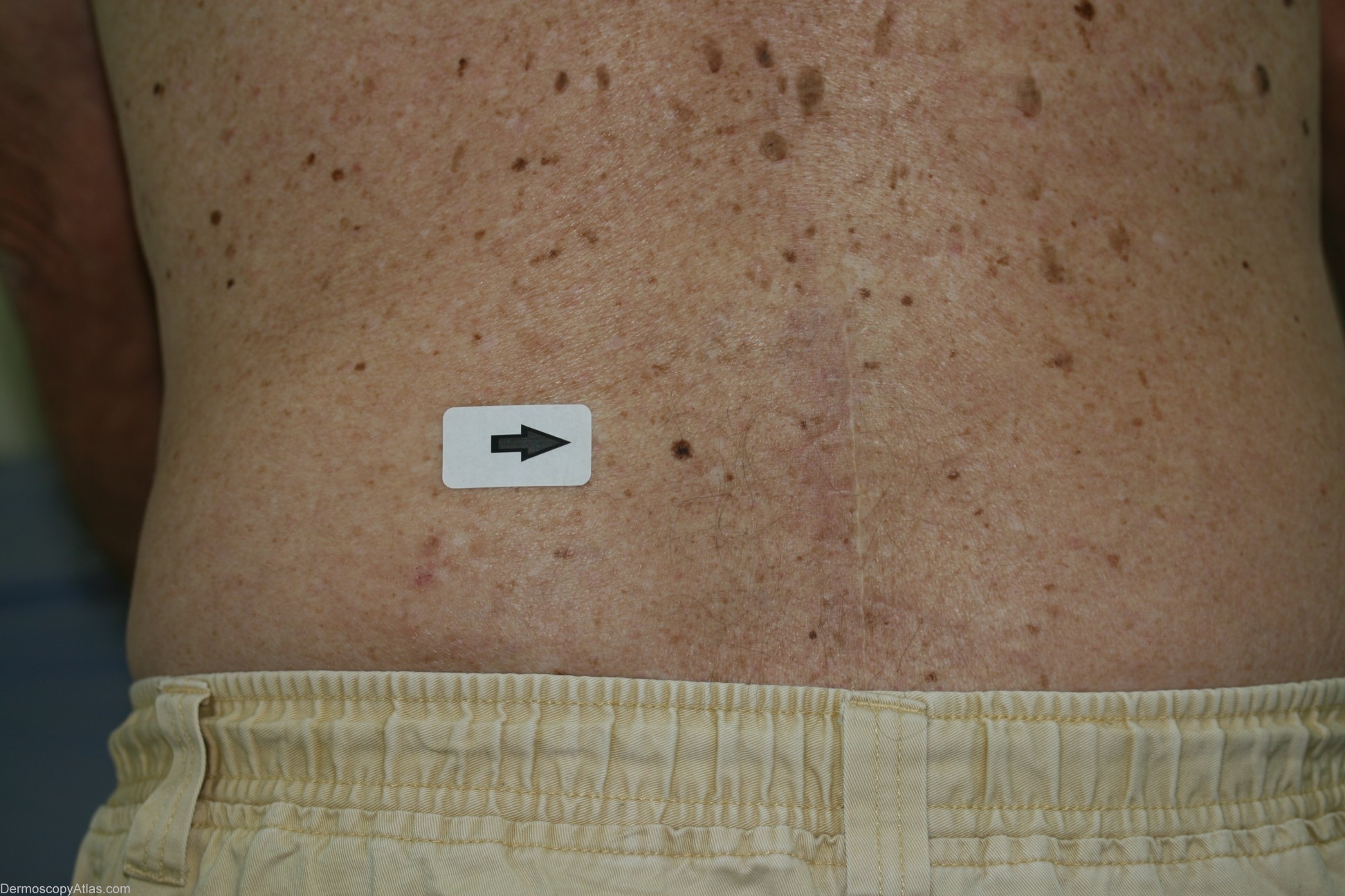 History: This lesion was originally imaged on a Molemax with the intention of monitoring after 3 months. The patient returned after 12 months and because of apparent change the lesion was excised. Histology revealed a naevus with moderate dysplasia and regression, falling short of melanoma in situ.