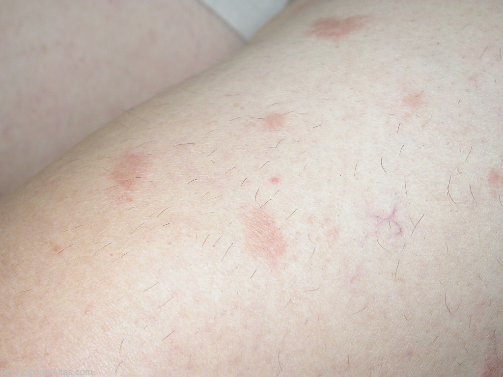 Description: Orange to brownish background pigmentation with small reddish to purpuric petechiae.