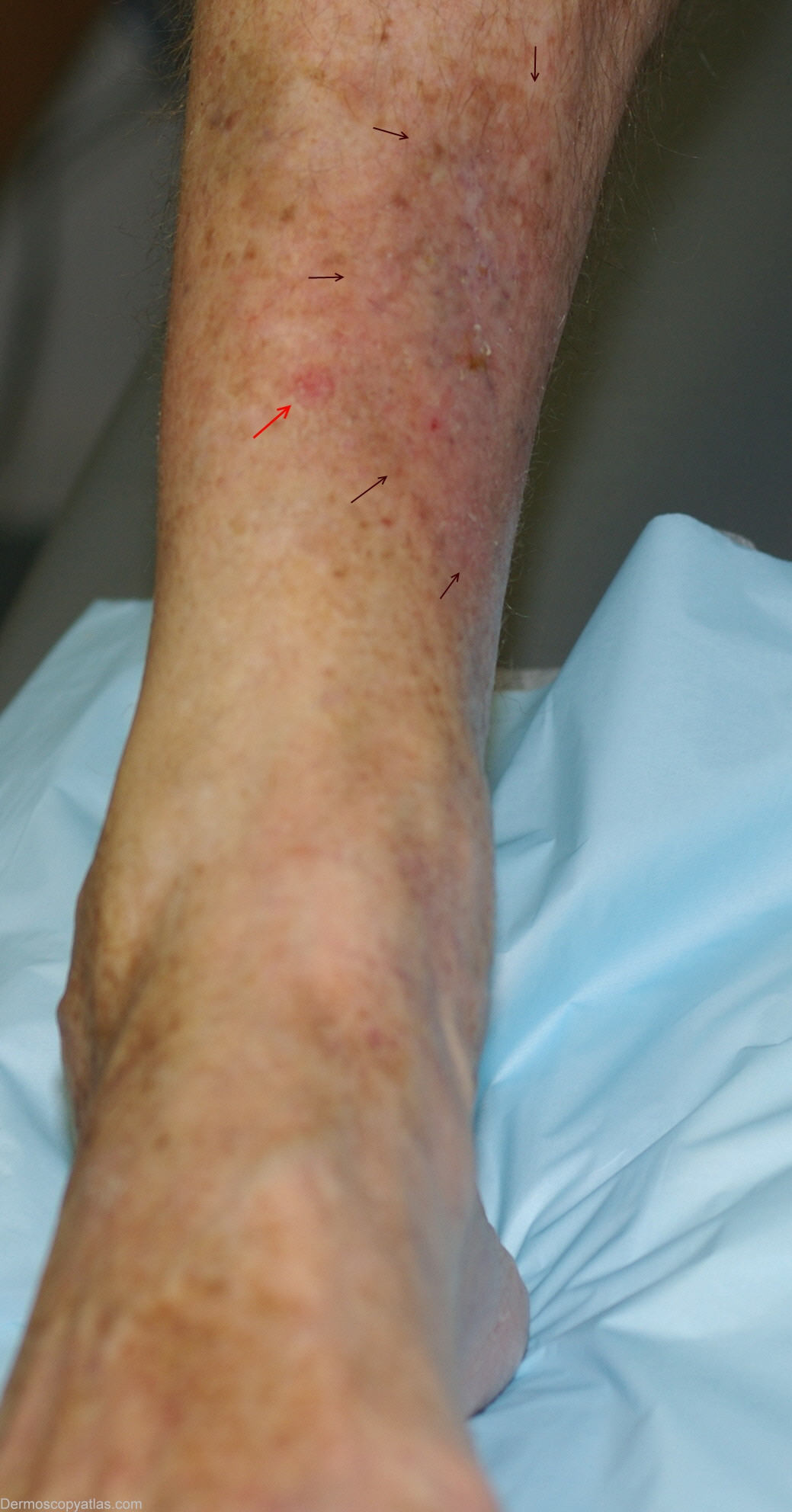 Description: Dermoscopy - Glomerular vessels with scaly surface.
