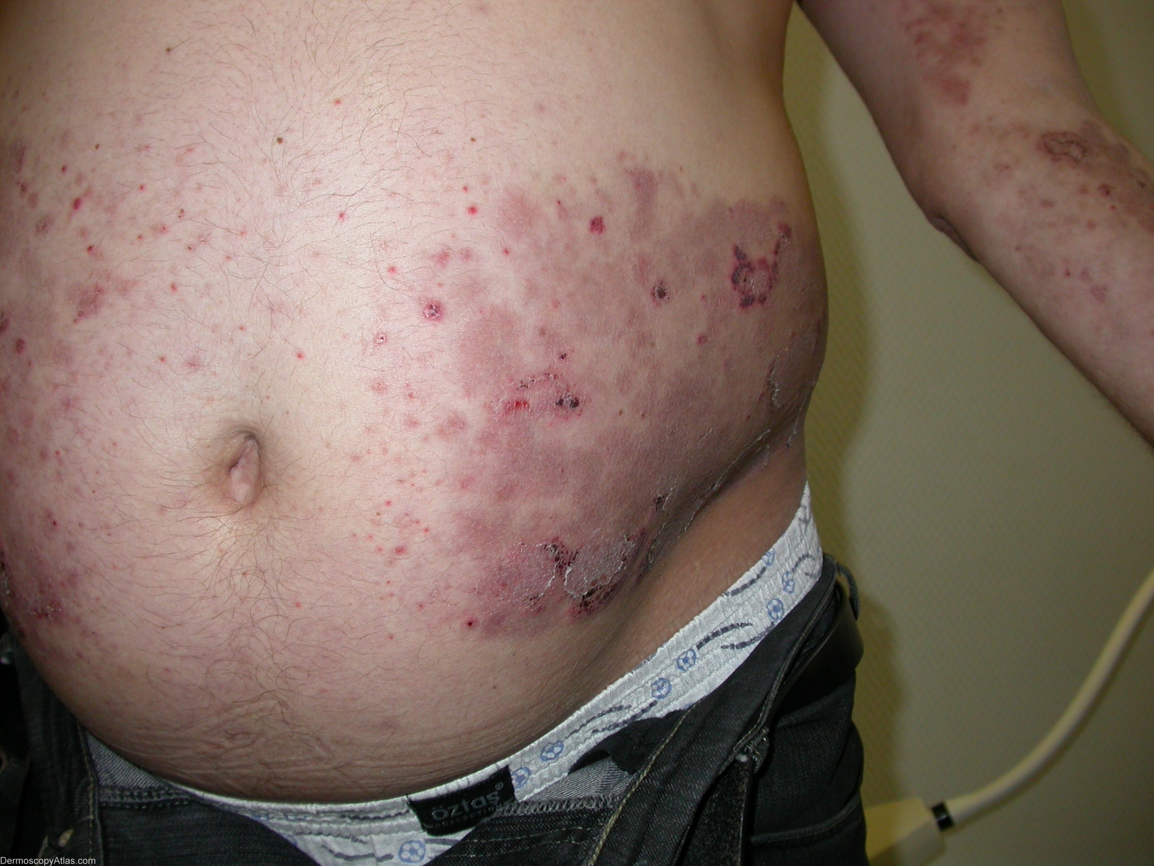 This 45-years old man developed a red to blue-black papule varying in size with surface scales since childhood. Great variation in lesion size making patients appear as a "peppered with buckshot." No metabolic disease or lysosomal defect was observe in this case.