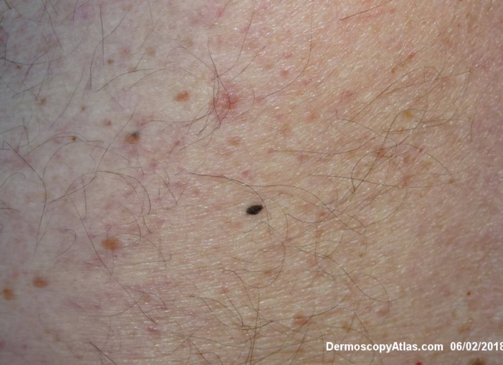 Routine skin check of a male in late 60s with this pigmented lesion on the lower back. Not aware of it. Clinically it stood out because it was much darker than his other nevi.