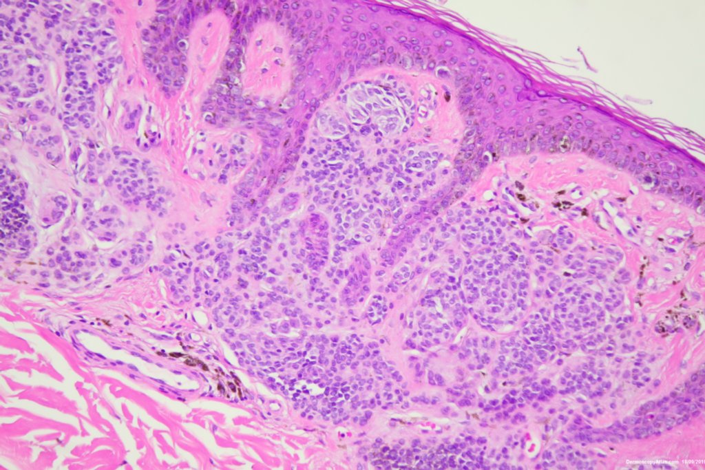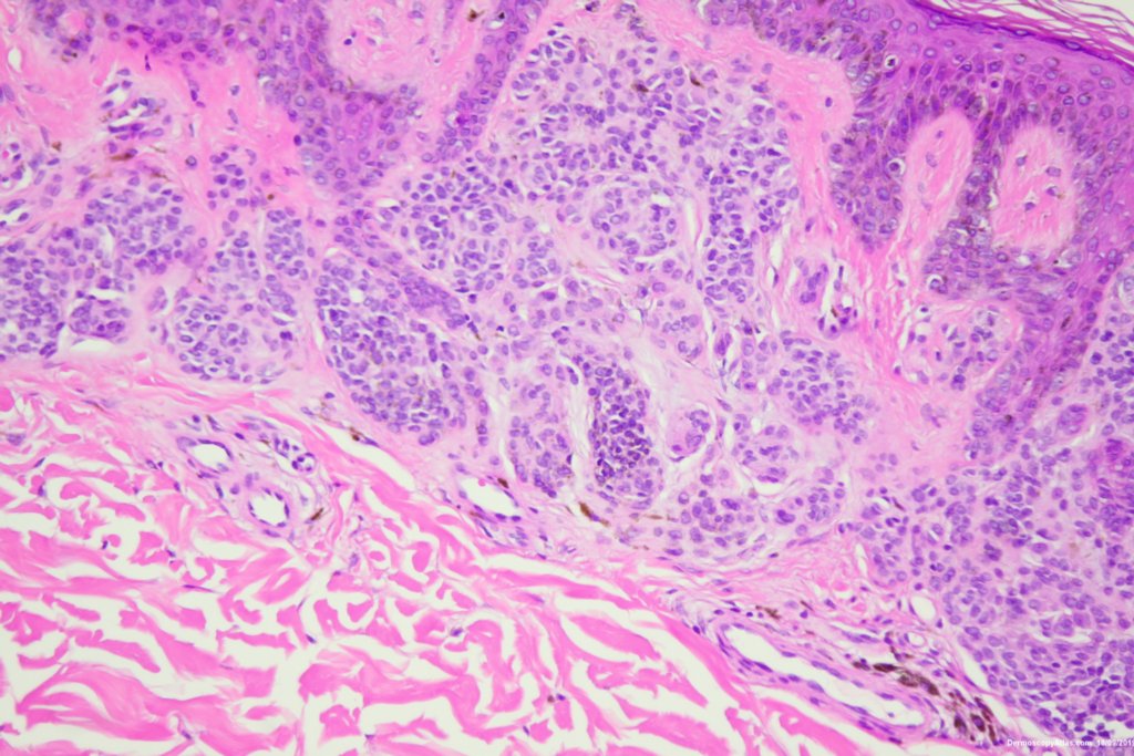 Histology showed a compound nevus with some pigment in melanophages in the dermis giving the grey.