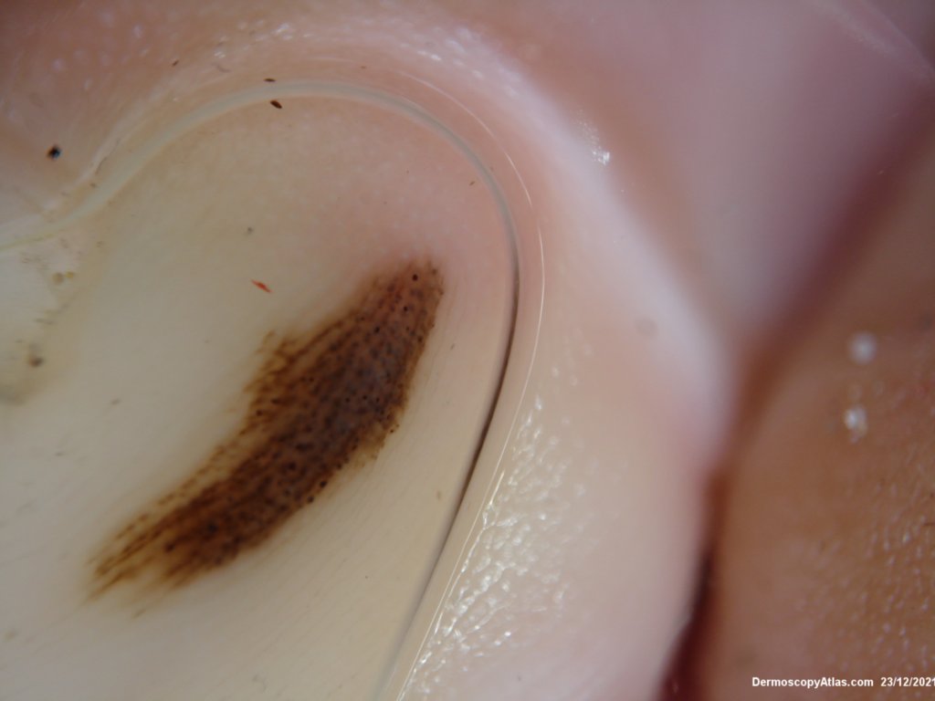Always look at the periphery of the lesion to assess whether a furrow or ridge pattern. It is very rare for a melanoma to later develope in an acral nevus.