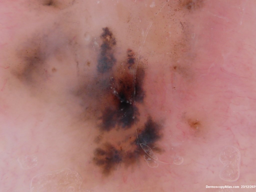 See dermatoscopic features of pigmented BCC in Dermoscopy Made Simple