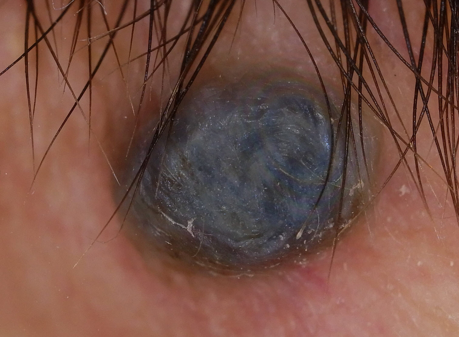 A punch excision and vertical closure showed it to be a thrombosed hemangioma