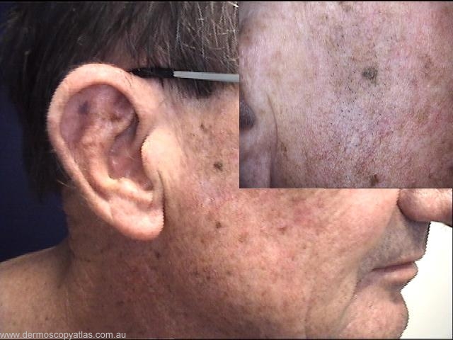 Consider Solar lentigo, Pigmented solar keratosis,Seborrhoeic keratosis, Melanoma in situ or Melanoma.