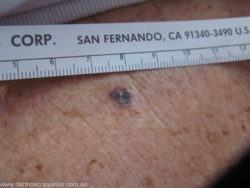 Case 7 80 year old with Type 4 skin feels her back is itchy. This lesion was noted incidentally over her scapular area. Patient was unaware of lesion.